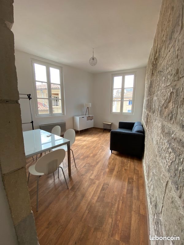 Rue saint antoine, proche place du marché. Un appartement T2 meublé au 3eme étage comprenant: une entrée, une cuisine équipée (plaque, hotte, frigo), un séjour avec climatisation réversible, une salle d’eau avec wc, une chambre. Chauffage individuel électrique. Bien géré par agence immobilière. Pas de frais d’agence.