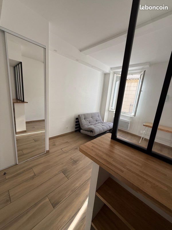 Au cœur de l’Ecusson, quartier Saint Roch, loue charmant studio entièrement rénové Situé dans un petit immeuble de la rue en Gondeau, il se compose d’un séjour avec dressing, d’une cuisine aménagée et d’une salle de douche. Il est loué avec un futon et un bureau. Visite après validation du dossier locatif (avis imposition locataire ou garant, pièce identité, contrat de travail ou attestation étudiante) Loyer: 585€ charges comprises Charges mensuelles:35€