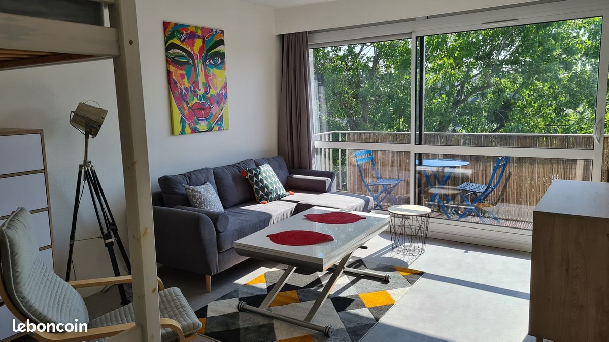 Disponible au 1er décembre (voire un peu avant en fonction du déménagement du locataire actuel) . Rue du gros chêne, studio de 30m² au 6ème et dernier étage avec parking aérien clos par un portail ainsi qu'une cave. Grande pièce de vie lumineuse donnant sur balcon avec vue dégagée. Mezzanine avec lit 2 places, canapé, fauteuil, table basse Cuisine entièrement équipée : frigo, micro-ondes, cafetière, bouilloire, ustensiles de cuisine, couverts. Salle de bain avec baignoire. Machine à laver. Nombreux placards. Loyer 570€ comprenant l'eau froide Et chaude ainsi que le chauffage. Reste à votre charge l'électricité et internet. Particulier, 1er contact par mail en vous présentant brièvement.