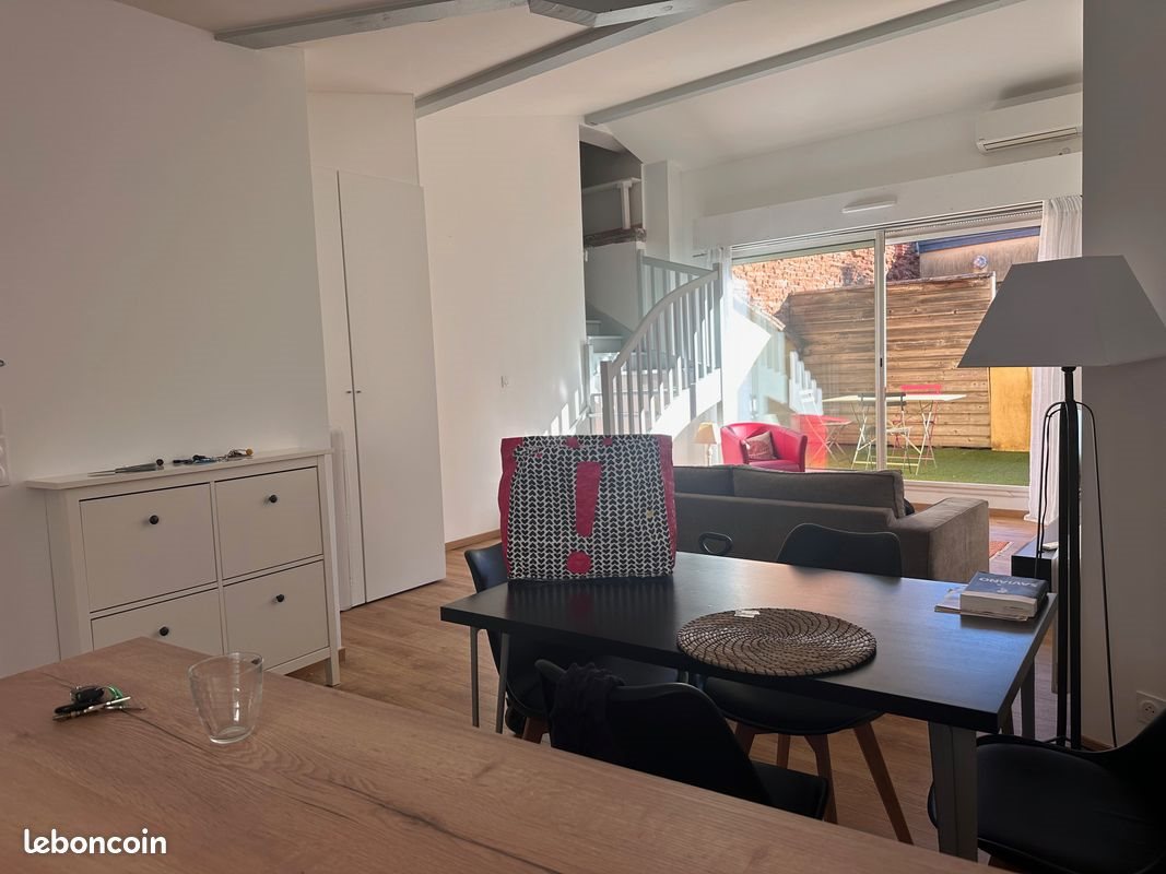 Très lumineux T3 meublé duplex de 65 m2 situé entre la place des Carmes et la place du Salin. Il est au 5ème et dernier étage avec ascenseur. La pièce de vie de 35 m2 donne via une grande baie vitrée sur une belle terrasse ensoleillée de 12 m2. Situé sur l’arrière de l’immeuble, l’appartement est ainsi très calme. La pièce de vie et et les 2 chambres sont climatisées. La cuisine haut de gamme récente est équipée de frigo/congélateur double porte, lave vaisselle, plaque induction. Lave linge et Tv wifi font aussi partie des équipements. Les 2 chambres situées à l’étage sont équipées de placards. Le prix inclus les charges de copropriété. Il vous restera en plus : électricité, internet et eau. Un local vélo collectif fermé à clef est à votre disposition. Un petit local fermé est disponible en sous sol. Le parking municipal Saint michel est à 3 mn et propose des tarifs adaptés aux résidents. Disponible début Janvier. Si vous êtes intéressés, merci de nous mettre à disposition votre dossier locataire sur le site du bon coin. Collocation étudiants non accepté. Revenu minimum : 3800 euros net mensuel. Pas de frais d’agence.