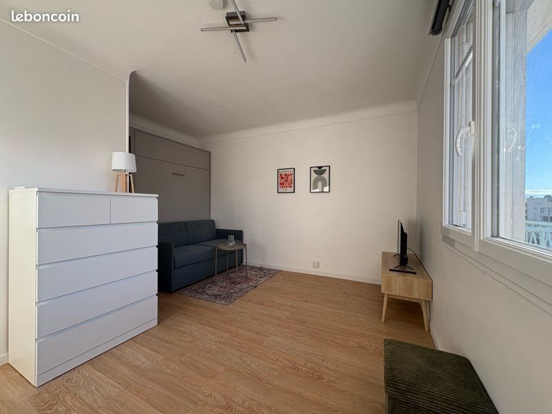 Disponible de janvier à juin, ce studio climatisé entièrement refait à neuf est situé boulevard Gorbella, au 6ᵉ et dernier étage avec ascenseur, offrant une luminosité exceptionnelle. Le logement - Superficie : 24 m² - Dernier étage avec ascenseur - Très lumineux - Entièrement rénové - Climatisation - Lit escamotable 140x200 avec canapé intégré + bibliothèque latérale neuve : gain de place optimal - Cuisine moderne entièrement équipée, incluant lave-linge - Salle de bain avec baignoire - Cave incluse Localisation idéale - Tramway au pied de l’immeuble : à 1 arrêt de la Faculté Valrose, à 10 min de la Place Masséna et la mer - À 5 min à pied de la Place Libération et de la Gare du Sud - Quartier pratique : boulangerie, tabac, supermarchés, restaurants et commerces immédiats Bail mobilité Garantie visale obligatoire