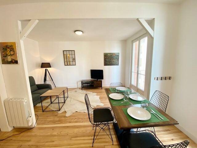 À Louer - Secteur St François. Bel appartement de type T2 entièrement rénové et meublé avec goût au 2ème étage sans ascenseur. L'appartement comprend : entrée, séjour ouvert sur la cuisine aménagée/équipée, chambre, salle de bains, Wc indépendant et buanderie. Grand balcon. Double vitrage, chauffage individuel électrique. Loyer charges comprises 800€/mois (750€ de loyer + 50€ de charges qui incluent la teom ainsi que l'entretien des parties communes). Libre au 1er décembre ! À découvrir.