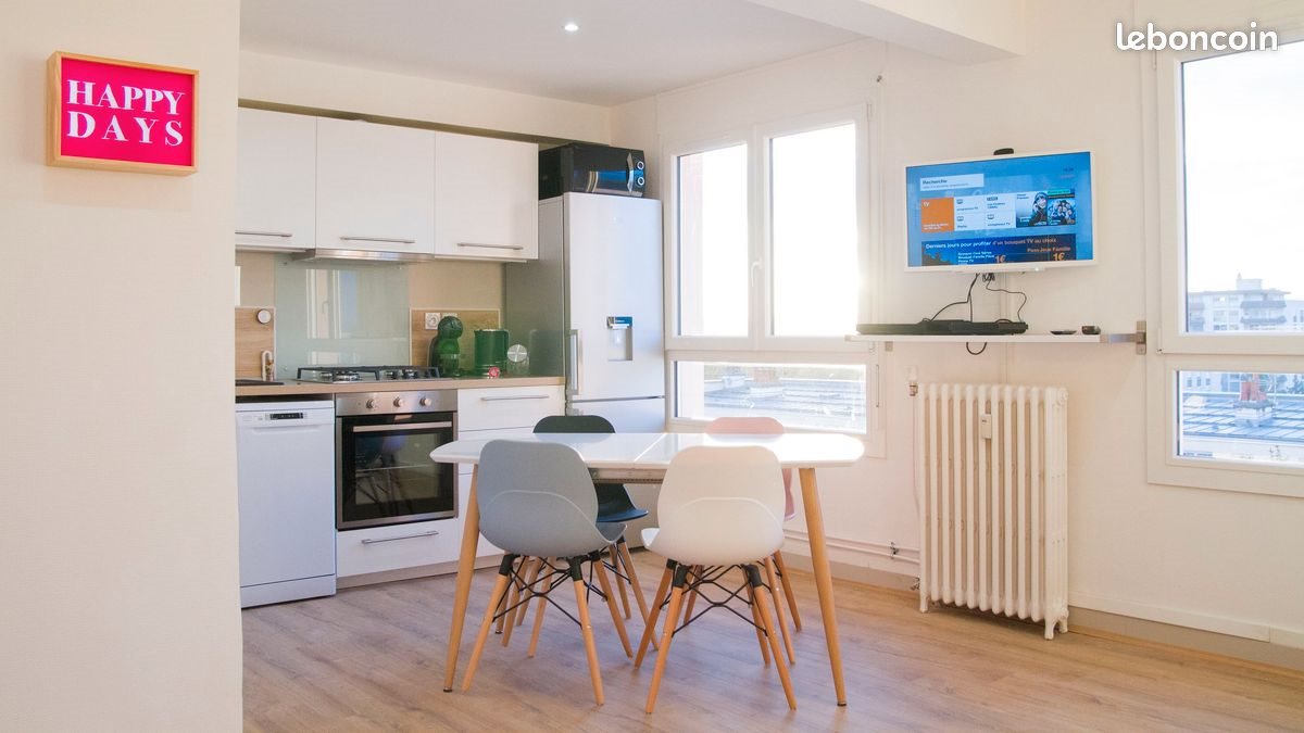 Très bel appartement meublé de 3 chambres, à deux pas des facultés et hôpitaux dans un appartement de 63m², entièrement refait à neuf et équipé. Adresse : 115 avenue maréchal Lyautey Libre dès le 1er février 2026. Une Situation Idéale L'appartement est idéalement implanté, dans un quartier calme et tout proche des commodités : - 10 à 15 min à pied des facultés. - 5 min à pied du tramway n°1, arrêt "Grésilles", qui dessert le centre-ville et la gare Sncf en moins de 20 minutes, et les facultés en 5 minutes. - Commerces : à 5 min à pied, un petit casino, pharmacie, boulangerie, coiffeur, banque, … - Aucune difficulté pour se garer, de nombreuses places gratuites sont disponibles devant la résidence Séjournez Dans Un Cadre Des Plus Agréables De la chambre à la salle d'eau, vous profiterez d'un cadre moderne dans cet appartement lumineux, rénové aux dernières tendances. Entièrement meublé et équipé, vous entrerez dans un lieu déjà prêt à vous recevoir. Les chambres comprennent : lit double, bureau avec chaise, et rangements. La cuisine est entièrement équipée : table de cuisson, four, lave-linge, frigo, vaisselle (assiettes, verres, couverts, casseroles, ...), machine à café. Elle est ouverte sur le salon. Pour vous détendre, vous trouverez un canapé avec table basse, ainsi qu’une télévision écran plat, et l'équipement pour accès internet et télévision. L’Appartement comprend aussi 1 grand placard de rangement dans le couloir, ainsi qu'une salle d'eau et des toilettes séparés. Au sous-sol, une cave privative est à disposition. En option, le linge de lit et de toilette pourront être mis à votre disposition. Un Budget Maitrisé Et Sans Surprise Le loyer intègre déjà les charges de copropriété et le chauffage. Il ne vous restera plus qu'un petit budget à prévoir pour l'électricité et l'eau chaude, qu'il est possible d'intégrer au loyer si vous le souhaitez. Selon votre situation, les aides au logement sont applicables. Je suis à votre disposition pour toute question et l'organisation d'une visite.