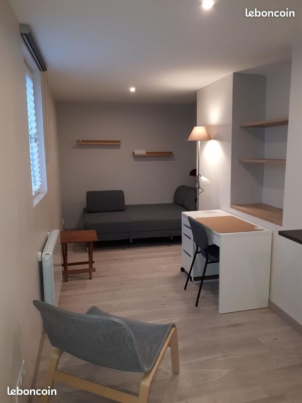 Loyer 550€ hors charges Charges prévisionnelles mensuelles de 70€ -- comprenant tout le reste: Eau, Electricité (chauffage électrique), charges de copropriété et enlèvement des ordures ménagères). Régularisation trimestrielle. Particulier loue Grand Studio 27m2 meublé en duplex, Rez de chaussé et 1er étage d’une Copropriété bénévole de 7 Lots. Très propre, A deux pas de la place des Halles, Copropriété calme avec entrée sécurisée, entrée du studio sur la cour. Au rez de chaussée, Entrée avec armoire de rangement, glace, machine à laver, aspirateur, étendoir à linge. Escalier d'accès à la pièce de vie. Au 1er étage, Une grande pièce de vie avec une cuisine ouverte, équipée et aménagée (frigo, four, micro-onde, lave-vaisselle, plaques vitrocéramiques, hotte, rangements, vaisselle, casseroles, ustensiles, etc., tablette haute, tabouret...) Un coin détente bureau avec petit bureau, chaise de bureau, meuble avec tiroirs de rangements, niche avec trois grandes étagères. Un coin chambre avec un combiné Lit/canapé 120x200 cm, table basse, Une salle de douche avec Wc, douche et velux sur cour. La caution demandée est de 2 mois de loyer hors charges (1100€) Libre tout de suite. Agences s’abstenir Svp.