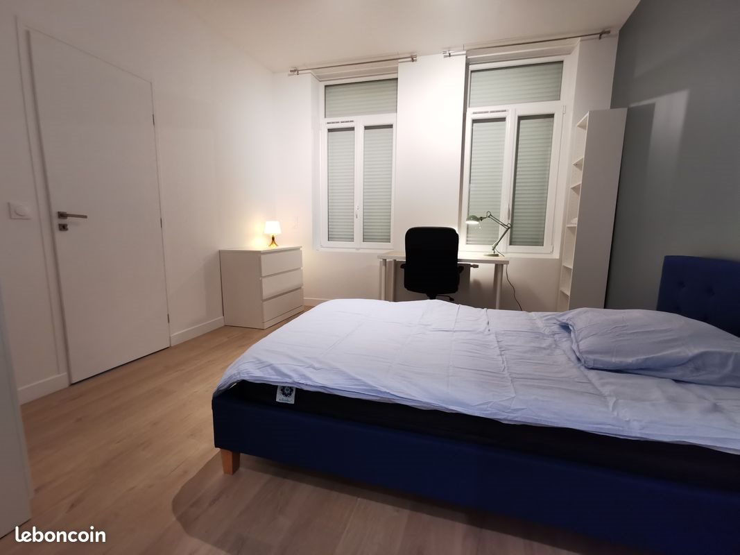 Rue Chanzy, Lille/Hellemmes À seulement 10 minutes à pied du métro Mairie d’Hellemmes et à deux pas du quartier des anciennes Fives Cail, entièrement transformé : restaurants, cafés, foodcourt, salles d’activités, espaces culturels… Ambiance vivante et sécurisée. Station V’Lille et commerces de proximité à quelques minutes. La chambre proposée – env. 13 m² • Chambre lumineuse et confortable d’environ 13 m² • Salle de douche privative (douche + vasque + rangements) • Fenêtre en double vitrage Pvc • Parfaite pour étudiant(e) cherchant indépendance et bon cadre de travail La maison (141 m² – rénovée en 2020) • Maison spécialement pensée pour des étudiants : spacieuse, moderne et impeccablement entretenue. O Espaces communs : o Entrée parquetée o Salon/séjour cosy avec Tv + internet o Très grande cuisine équipée (plaques vitrocéramique, four, hotte, frigo, congélateur, lave-vaisselle, micro-onde, cafetière filtre, bouilloire, vaisselle) o Buanderie indépendante avec lave-linge + sèche-linge o Cour extérieure carrelée façon parquet o Wc à chaque étage Confort & rénovation • Toiture refaite et isolée • Fenêtres double vitrage récentes • Chauffage central • Maison calme, saine et sécurisée Loyer : 450 € charges comprises • Tout inclus : • Électricité • Chauffage • Eau chaude & froide • Internet haut débit Pas de surprises, aucun supplément.