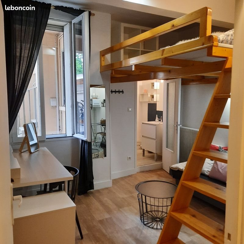 Particulier loue studio meublé de 20 m2 avec sa chambre en mezzanine de 6 m2. Libre à partir du 8 mars Immeuble sécurisé situé à 5 mn à pied du métro gare , de la médiathèque , des commerces et à 10 mn à pied de l'hyper centre. Ce studio se situe en rez-de-chaussée coté cour avec un petit extérieur et un local à vélos. Il se compose d'une entrée avec des Wc séparés. Une cuisine équipée , une pièce à vivre avec coin bureau , chambre en mezzanine. Une salle de bain avec baignoire et lave linge. Idéal pour étudiant ou jeune travailleur. Garant exigé . Pour les visites un dossier complet est demandé en amont . Cni pour le locataire ainsi que pour le garant , 3 dernières quittances de loyer , dernier avis d'imposition et 3 derniers bulletins de salaire