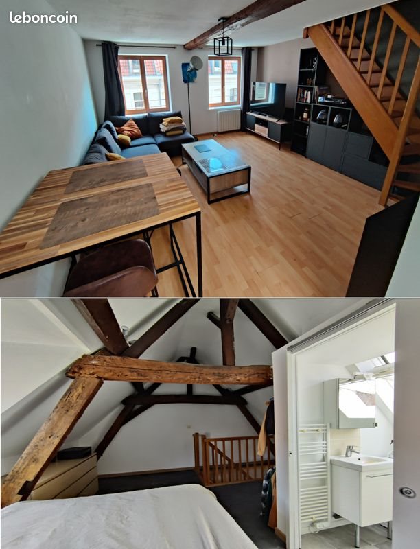A louer bel appartement T2 avec cachet, mansarde et en duplex, Bon état, Dans le quartier du Vieux-Lille, Rue du Metz, Dans un petit immeuble ancien très calme (3 appartements). Rue très calme aussi, proche du centre-ville, de commerces de proximité et des axes de communication. Surface : 48 m² Loi carrez : 41 m² Appartement situé au 2ème et dernier étage très lumineux. - Salon / séjour - Cuisine récente avec Plaque de cuisson, four, évier, Vmc. - 1 chambre à l’étage avec poutres apparentes - une Salle de bain avec baignoire et vasque (Vmc) - un Wc séparé - Placard de rangement Fenêtre en bois double vitrage, bonne isolation thermique et phonique, et radiateurs électriques à inertie programmables. Les charges comprennent : l'eau, la Taxe ordure ménagère, électricité partie commune, entretien extincteur, ... Emplacement pour un vélo si intéressé : 10 € / mois L'appartement est disponible rapidement Le locataire actuel peut laisser le Lave Vaisselle et le Frigidaire si accord pour le prix.