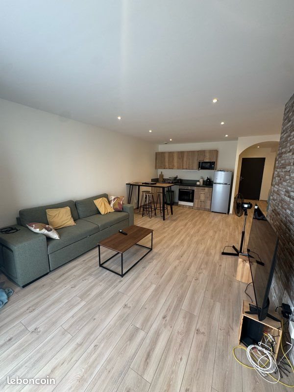 Un belle appartement neuf avec 2 chambres fermées en duplex le logement de 80 m2 comprend : .2 chambre fermée .Une salle de douche avec wc a l'etage .Un cellier avec wc rdc .Une cuisine équipée de ( plaque vitro céramique hotte ) .Un sejour ouvert sur la cuisine lumineux .Le logement est accompagné d'un emplacement de parking dans le prix. Loyer mensuel de 900€ 50€ charge Pas de frais d'agence, pas de frais de dossier Dépôt de garantie : 1 mois de loyer sans charge