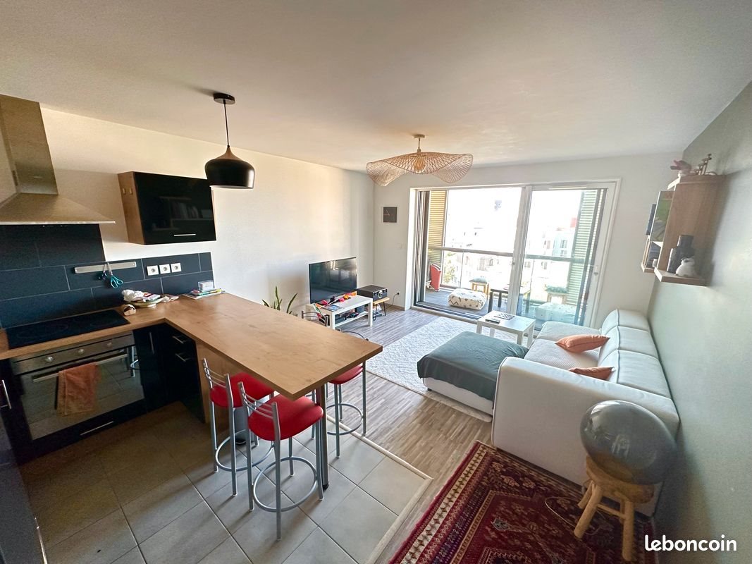 Appartement meublé 48m2 + terrasse 6m2 Au 6eme étage avec ascenceur d'une copropriété avec vidéosurveillance et deux portes securisées par Vigik. Situé sur la place Francois Il au cour du Quartier de la Création. Traversant exposé Sud (salon - cuisine) et Nord (chambre, donnant sur grand espace calme et sans vis à vis). Lave vaisselle, réfrigérateur neuf Xl, four intégré à la cuisine réalisée par un cuisiniste). Tout les éléments d'un appartement meublé sont présents. Box parking privatif avec serrure + local à vélo sécurisé en sous sol. Surveillances vidéos également dans le parking.