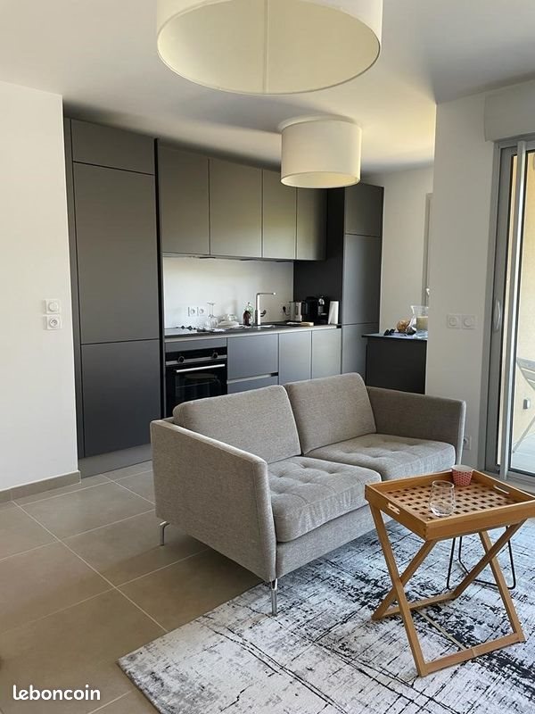 Appartement récent de type T2 avec terrasse, meublé avec raffinement, à Aix-en-Provence. Au 1er étage avec ascenseur de la résidence sécurisée "Bastide Notre Dame", l’appartement jouit d’un emplacement idéal : à 1km de tous commerces, banque, pharmacie et restaurants du cœur du village de Puyricard. Il se compose : - séjour lumineux de 25m² avec carrelage beige au sol, fenêtre double vitrage, canapé fixe, table basse, meuble Tv. - cuisine intégrée avec placard haut et bas entièrement équipée (grand réfrigérateur & congélateur, plaque à induction, hotte, four, micro-ondes, lave-vaisselle, cave à vin, cafetière Nespresso et bouilloire électrique). - chambre avec grand dressing, lit Queen size 160 X200, 2 tables de chevet. - salle de bain avec baignoire, sèche serviettes, pare baignoire, lave-linge, meuble vasque et de Wc suspendus. - Place de parking en sous-sol sécurisée (niveau garage) de la résidence Loyer : 1 350euros + 150€ de charges réajustable annuellement. Dépôt de garantie : 2700 € Disponibilité immédiate