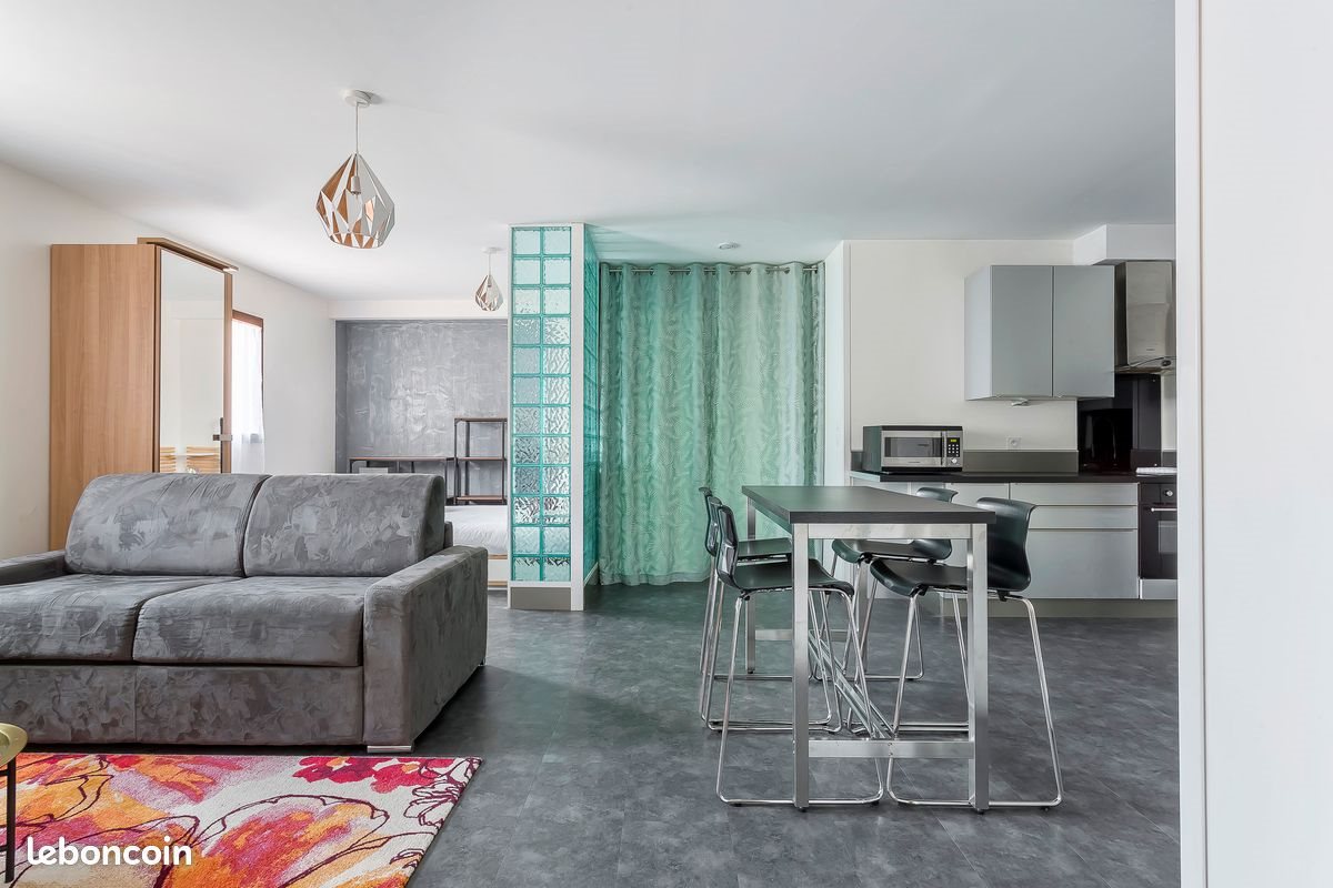Studio 40m2 complètement meublé : cuisine équipée complète, coin salon avec Tv (internet inclus) canapé convertible, chambre séparée par tenture avec couchage 140, fenêtres orientées Sud/ Sud Est, lit avec tiroirs de rangement, chevets. Rue très calme, stationnement public permanent en face de la porte, tous modes de transport dans un rayon de 300m : gare de bus desservant l'Ouest lyonnai , métro ligne D, station Velov, autoroute A6, gare Sncf Vaise. Supérette, Mac Do et quartier piétonnier de Vaise à 500m, 8' des Terreaux à vélo. Diagnostics effectués en 2020, soumis à encadrement des loyers avec majoration pour absence de tout vis à vis, chauffage et rafraichissement géothermique par le sol, stationnement permanent. Loyer majoré 823€, chauffage et charges 45€. Versement mensuel hors fluides (eau/électricité) 858€. Avance mensuelle sur les consommations de fluides 60€, correspondant aux couts observés. Régularisation annuelle. Dépot de garantie 1600€. Montant mensuel total à régler : 858+60= 918€
