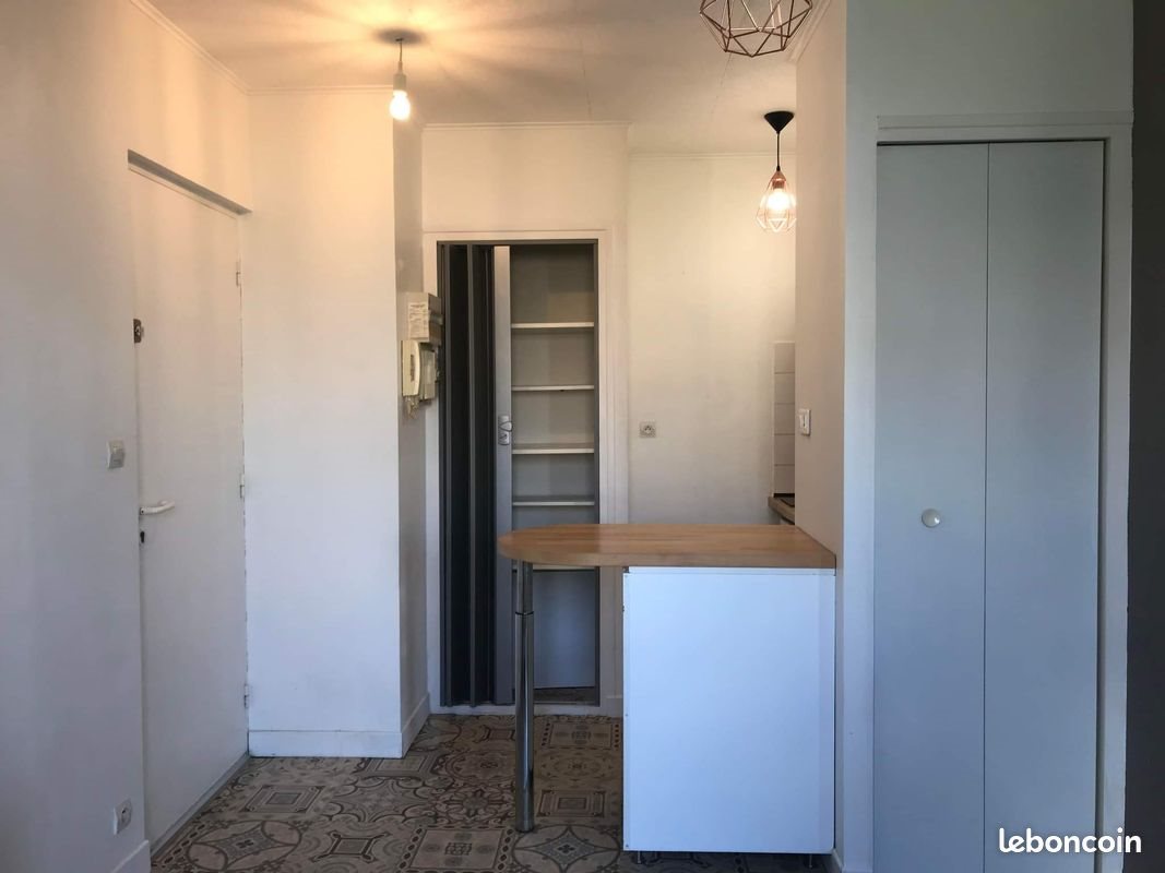 Studio tout meublé avec coin cuisine (réfrigérateur, plaque induction, four micro-onde), petit coin salon (2 fauteuils, table basse) et bureau, Le coin nuit est séparé par un mur et rideau (lit en 140). Salle d'eau avec douche et toilettes. Chauffage performant par radiateur électrique à inertie pierre céramique. Studio confortable au calme, exposé plein sud sans vis-à-vis avec 2 fenêtres et volets roulants. Situé dans une rue en stationnement non payant à 3mn à pied d'un Carrefour Cyti et 5mn de la rue Jean Jaurès.