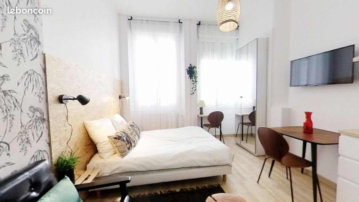 Sans frais d'agence et sans frais d'état des lieux, Rare et à voir absolument ! direct propriétaire loue studio meublé tout confort décoré par décoratrice d’intérieur dans le centre-ville au 10 rue de L’Alma à 150 m de la place Jean Jaurès et de la place de la place Jacquard (école d’architecture) proche de toutes lignes de tram et facile d’accès aux gares, facultés, université, de tous commerces et commodités de l’hyper centre mais au calme, dans bon immeuble calme. Le studio d'une superficie de 20 m² 1er étage sans place perdue, avec 1 grande fenêtre double vitrage, a été entièrement rénové, sols, murs, plafonds, fenêtres, électricité et plomberie avec une isolation soignée et de très belles prestations, aménagé par une décoratrice d’intérieur. Le studio est équipé lit en 120 cm avec matelas à mémoire de forme et tête de lit déco avec lumière et chevet intégré, un canapé, une grande armoire fermée, avec deux portes miroirs, un meuble à chaussures de grande capacité, une table à manger en marqueterie avec deux chaises assorties, une smartTV Led connectée de 80 cm, 1 salle de bain avec douche, lavabo et 1 W-c suspendu. Les petits plus : Une déco cosy papier peint, luminaires dans le séjour, tête de lit et chevets avec luminaires fournis, meuble sdb et sèche serviette dans la salle de Bain, Cuisine équipée, vaisselle, couverts, casseroles, déco, tout est fourni. Un lave-linge et sèche-linge partagé avec 3 locataires sur le même palier. Loyer 370 € + 60 € de charges comprenant les charges de l'immeuble, le chauffage, l’électricité, eau chaude et eau froide et un accès internet haut débit orange (box partagée avec 3 lots), pas d’abonnement à souscrire, vous pouvez venir avec vos valises tout est compris, même la déco !. Pour toute visite ou renseignement, merci de m'envoyer un mail avec vos coordonnées, je vous rappelle au plus vite, à visiter rapidement, visite virtuelle dans l’onglet photos.