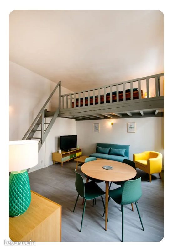 Appartement de 35m2 disponible à partir de Janvier. Chambre en mezzanine Salle d'eau avec douche à l'italienne Cuisine équipée Chauffage gaz