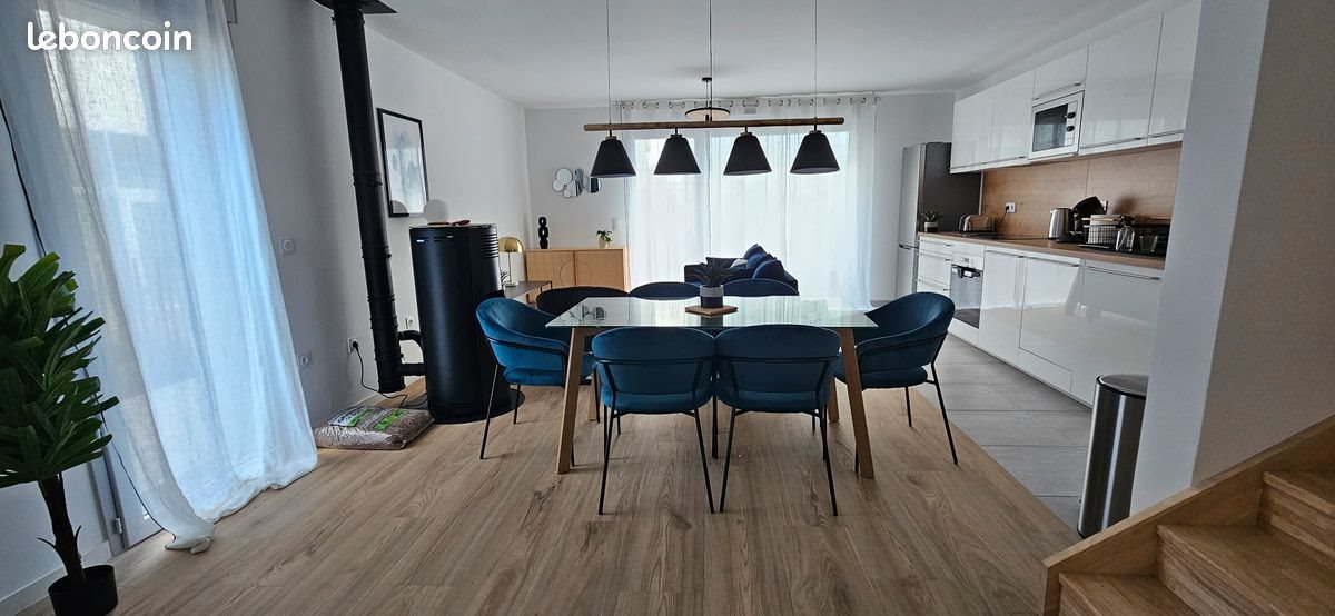 Maison récente de 80.90 m2 entièrement meublée, dans la résidence « les marquises » située au 75 boulevard Lauriol, 44 000 Nantes. La maison offre une très belle pièce de vie avec son poêle à granulés, une belle cuisine équipée (hotte, plaque de cuisson, frigo, lave vaisselle, four, meubles de rangements, ustensiles de cuisine …) une terrasse de 36 m2, une première chambre au Rdc meublée, une salle d’eau avec meuble vasque, sèche-serviette, une buanderie avec machine à laver. À l’étage deux chambres meublées, et une salle de bain. 2 boxes en sous sol complètent ce bien Dpe 77kwh /C chauffage au gaz + poêle à granulés Informations légales : Loyer : 1 394.88€ Charges : 30€ (eau froide et entretien des parties communes). Honoraires de locations : 1051.70€ (Dont 242.70€ pour l’état des lieux) Dépôt de garantie : 1394.88€ Pour une visite merci d'envoyer votre dossier location à [Coordonnées masquées]