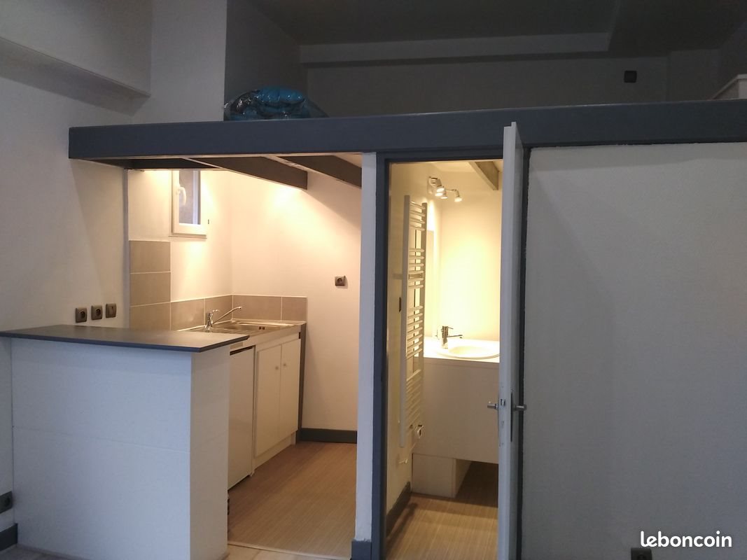 Situé au RdC du 02 Impasse des Cossus à Bordeaux. Grand studio de 22m² (ou T1 car la cuisine est séparée) avec mezzanine de 6m² servant pour le couchage. L’Appartement se compose : • D’une cuisine avec kitchenette, d’une plaque deux feux, d’une hotte aspirante et d’un réfrigérateur. • D’une salle de bain avec douche et wc. • D’un salon en parquet stratifié et d’une pièce servant de penderie. • D’une mezzanine de 6m² (au-dessus de la cuisine et de la SdB servant pour le couchage). • D’une pièce servant de penderie • Fenêtres double vitrage en Pvc et volet électrique Le chauffage et l’eau chaude sont électriques. Il n’y a pas la possibilité d’installer une machine à laver. Sont inclus dans les charges : • L’eau froide, • L’entretien de l’immeuble • Les Ordures Ménagères • Mais aussi Internet par wifi. Au pied de l’immeuble : • Les lignes de bus 5,6,9,29 et surtout le Tramway D • Le Parking Beaujon. Libre au 1er février Caution Visale préférée.