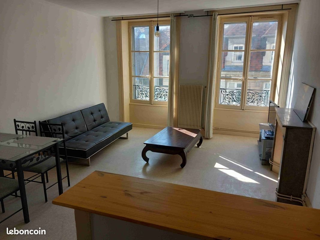 T2 meublé au 3ème étage d'un petit immeuble calme du haut de la rue Battant. Gare, tous commerces et grand parking gratuit à proximité. Grand séjour ouvert sur coin cuisine, chambre sur cour, salle de bains (avec cabine de douche, lavabo et Wc). Chauffage individuel gaz de ville. Entièrement meublé avec gazinière, frigo, four, micro-ondes, vaisselle, casseroles, table, chaises, Tv, canapé convertible, lit double, rangements, etc... Libre. Loyer : €580 + €45 de charges