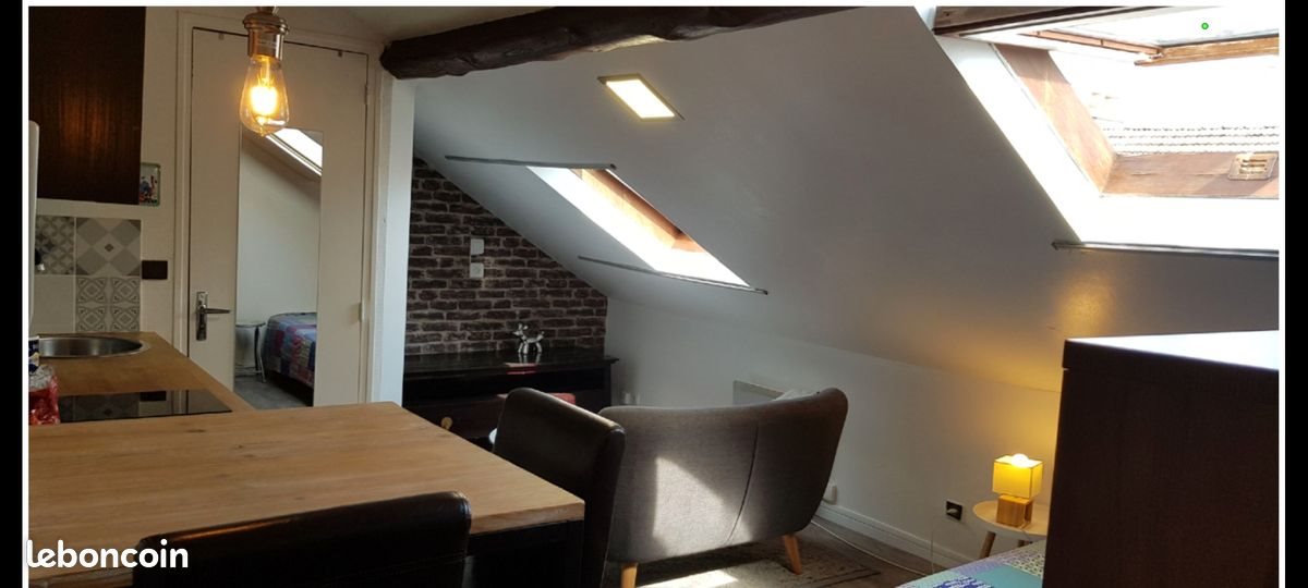 Studio de 18m2 mansardé situé rue Croutelle, au 3ème et dernier étage d'un petit immeuble ancien (sans ascenseur). Au calme. Equipement : Kitchenette avec 2 plaques électriques, four micro-ondes, réfrigérateur Table à manger avec 2 chaises, Lit avec matelas Bultex 140 200cm Armoire penderie/étagères Banquette et table basse Salle d'eau avec douche et Wc et meuble avec miroir. Ballon d'eau chaude 50L Loyer : 390€ + 30€ charges (eau, électricité des communs + taxes ordures ménagères). Reste à votre charge : Edf (environ 50€/mois dont chauffage électrique). Situation Geographique : Rue Croutelle, petite rue à sens unique au calme. 5Mn à pied du Tram (avenue de Laon, Arrêt Saint Thomas) 10 mn à pied de la gare de Reims + centre ville Proximité immédiate des commerces (boulangerie, Carrefour city, restaurants, banques, bar/tabac/presse etc...) Logement Pour Etudiant Avec Caution Des Parents (caution 2 mois de loyers hors charges + mois en cours, documents à remettre : Certificat de scolarité, pièces d'identité, 2 derniers bulletins de salaires des cautions, dernier avis d'imposition + contrat d'assurance habitation le jour de la remise des clés) Premier contact par mail, je vous remercie. Bien cordialement