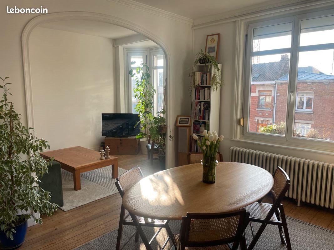 Particulier met à la location meublée appartement T3 situé à Bois-Blancs, traversant, au 4e et dernier étage, disponible au 16/02/26. Il se compose de : - 2 chambres avec chacune des rangements intégrés - 1 Sdb - 1 cuisine tout équipée (frigo, congélateur, Lv, 4 plaques induction, hotte aspirante, micro-ondes intégré) - 1 salon séjour avec bow window - 1 buanderie avec machine à laver et nombreux rangements - 1 Wc - 1 cave privative L’appartement est loué entièrement meublé (literie neuve). Il est situé au pied de l’arrêt métro Bois Blancs avec nombreux commerces, station vLille, arrêt de bus dans la rue, citadelle à 5 min à pied. Le loyer s’élève à 1290€ (encadrement des loyers respecté). Les charges sont de 100€ incluant (eau, électricité des communs, enlèvement des ordures). Un complément de loyer de 250€ pour la jouissance de la cave, la jouissance de l’électroménager et la localisation stratégique s’ajoute. Portant la totalité à 1640€ par mois charges comprises. Dépôt de garantie (2 mensualités) : 2580€ Premier contact par la messagerie Leboncoin.
