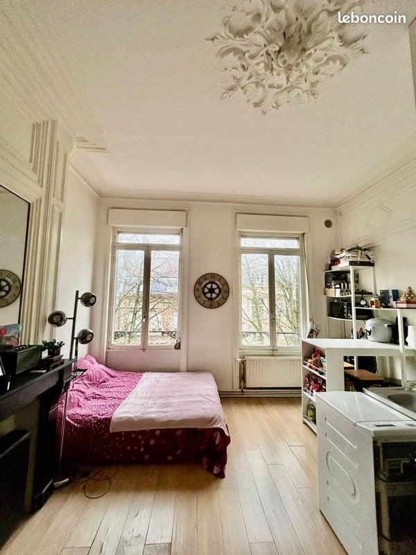 Particulier loue studio, centre-ville de Lille, à proximité immédiate du métro, république, Beaux-Arts Studio très calme et très lumineux, situé au troisième étage Comportant : - Une pièce principale avec une partie kitchenette équipée d’un réfrigérateur, de plaques chauffantes, d’un bloc évier et de rangements - une salle de bain avec cabine de douche, Wc, bloc lavabo et rangements Attention toutefois ce studio n’est pas meublé, les meubles que vous voyez sur les photos appartiennent à la locataire actuelle, et sauf accord avec celle-ci ne font pas partie de la location Studio loué 540 € mais comprenant toutes les charges ( L’eau, le chauffage et l’électricité Sony compris dans le loyer … vous n’avez donc rien à ajouter à celui-ci) Studio éligible à l’APL ou à l’allocation logement ( Dans la mesure où j’habite à l’étranger, les visites seront assurées par la locataire actuelle mais je vous remercie d’avoir la gentillesse de bien vouloir m’adresser uniquement vos messages par WhatsApp .. Compte tenu de l’éloignement, et du coût je ne pourrai répondre ni aux Sms ni aux appels téléphoniques en direct ) Bonne visite à bientôt