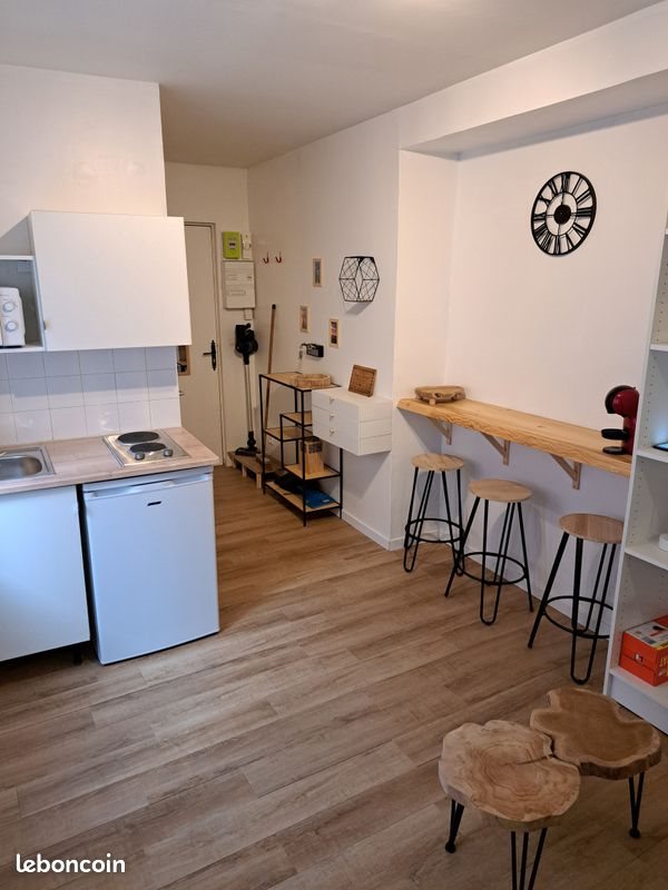 Bonjour, Appartement meublé à louer, la locataire quitte le logement le 7 décembre. Entrée souhaitée dans les lieux avant le 19 décembre. Les photos datent d'avant le passage de la locataire (un an) mais il sera nettoyé entièrement après son départ. Il est en Rdc sur cour intérieure. Equipements présents: machine à laver, frigo, micro-ondes, plaques électriques, arrivée fibre, meubles (lit, bureau, canapé, bar et chaises, grande armoire, étagère) Idéal pour étudiant ou jeune actif. Vu la petite surface je pense que ce n'est pas adapté pour un couple. Premier contact via leboncoin. Prix 620 + 50 de charges (dont l'eau qui est comprise) Merci.