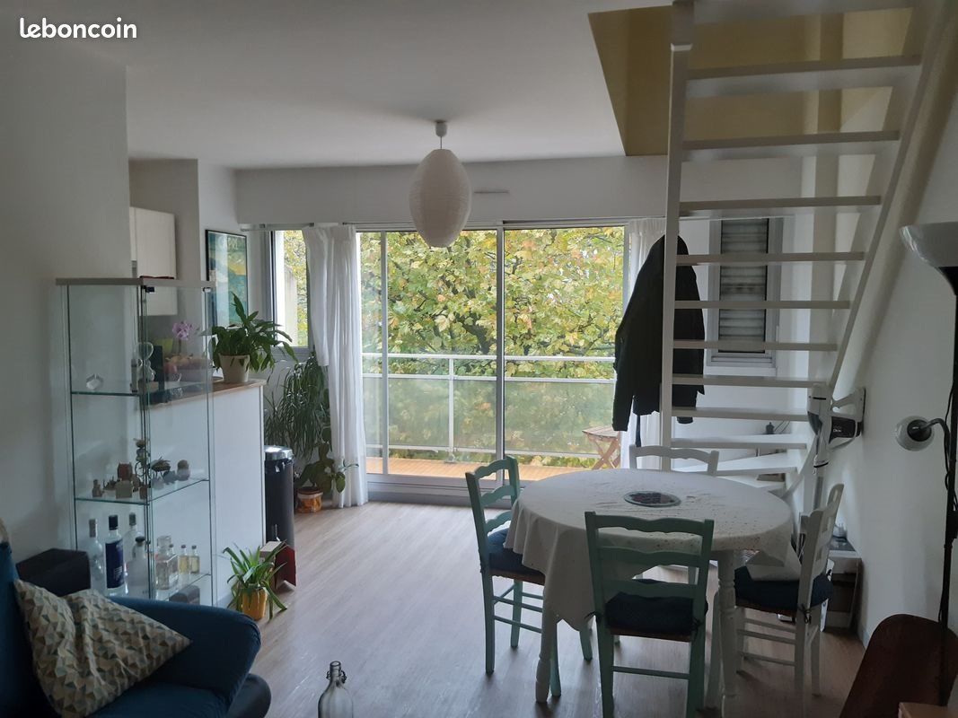 Agréable duplex de 63 m² au sol car étage sous comble, libre à partir du 27 décembre 2025, présentant une entrée avec Wc, un séjour ouvert sur cuisine meublée mais non équipée hormis plaque de cuisson et hotte, l'ensemble donnant sur un balcon de 4m² exposition sud et vue sur le parc de Procé. A l'étage un pallier avec placard, 2 chambres avec vélux et une salle de bain avec baignoire et Wc. Loyer 750€ + charges 105€