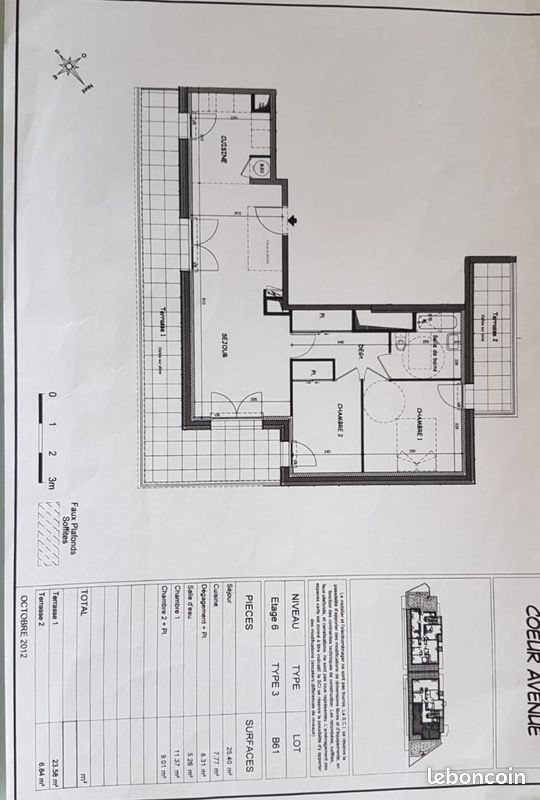 Dans résidence de 2014 très bien entretenue et sécurisée, située au 140 Avenue Maginot et à proximité du centre de Tours et du tramway, joli T3 de 65m2. Situé au 6ème et dernier étage avec ascenseur (seulement 2 logements au dernier étage). Cet appartement est fonctionnel et très lumineux. Aucun travaux à prévoir (ballon d'eau chaude neuf changé en octobre 2025) Il est composé d'une cuisine américaine équipée (plaque de cuisson, hotte aspirante, d’éléments hauts et bas…), d'un grand séjour, de deux chambres dont une équipée d’un placard coulissant, d'une salle de bain avec baignoire, Wc séparé. Point fort de cet appartement : une terrasse en L + un balcon (surface totale d’environ 33 m2) + dégagement avec placard intégré Le lot comprend deux places de parking en sous-sol Pas de frais d'agence Le montant des charges mensuelles de copropriété : 100€/mois Vente suite au départ du locataire : libre le 13 février 2026 Informations et photos complémentaires sur demande par mail