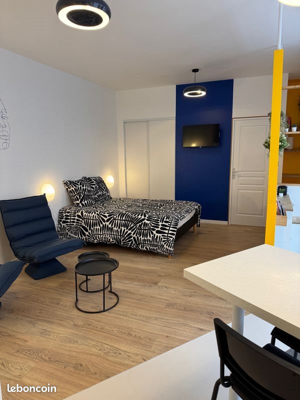 A louer : Studio de 30 m2, entièrement rénové (isolé, refait à neuf) et équipé. Proche de la gare et des transports en commun, dans un quartier calme avec accès facile aux espaces verts et commerce de proximité. Il comprend : - une entrée avec rangements - une cuisine équipée : plaque induction 4 feux, four, réfrigérateur + congélateur, petits électroménagers, beaucoup de rangements et un espace repas - une grande pièce à vivre avec un lit double, un espace salon, un coin bureau, un grand dressing et une télévision - une salle de bain avec grande douche, bel espace vasque et machine à laver - un Wc séparé Le logement est équipé de volets électriques et est relié à la fibre. Le loyer est de 690€ charges comprises Les charges comprennent : eau, électricité, gaz Plus de photos sur demande ! Libre au plus tard le