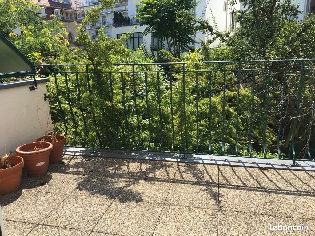 Appartement 2 pièces traversant de 53,5M² au 1er étage d'un petit immeuble calme de 3 logements rue Schiffmatt, proche du jardin de l'Orangerie. Un salon, une chambre avec 2 placards, un couloir, une cuisine indépendante équipée (four, plaques à induction, lave-vaisselle et lave linge, frigidaire et congélateur), une salle de bains avec baignoire et deux vasques, un Wc séparé, une terrasse de 5 M2 orientée plein sud donnant sur le jardin.