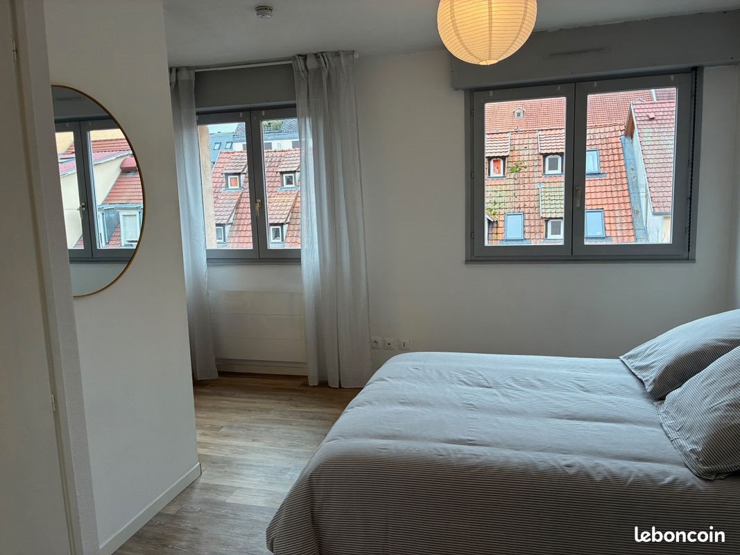 Appartement meublé Studio 1 pièce + 1 salle de bain + 1 entrée dégagement Appartement donnant sur cour, au calme. Lumineux. Bien agencé, avec séparation coin cuisine, une entrée séparée, 1 grand placard. Situé rue du Marais Vert à strasbourg Superficie de 25m2 Libre au 05/01/25 Salle de bain avec rangement, douche et emplacement pour machine a laver. Coin cuisine séparé de la chambre, avec cuisine équipée : frigo, plaques, rangements. Lit double + literie complète + table de chevet Table + 2 chaises Equipements de cuisine, casserole, couverts, assiettes, grille pain, bouilloir... Chauffage individuel électrique 4ème étage Droit Ascenseur Cave