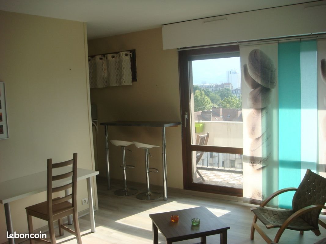 T1 bis de 27m² dans immeuble sécurisé (interphone et gardien) Quartier calme, entre centre ville et universités, 6ème étage avec ascenseur, très belle vue. Proche trams A, B, C (direction universités). Toutes commodités. Distribution: - grande pièce de vie, - baie vitrée donnant sur terrasse aménagée de 8 m², vue sur massifs du Vercors et Bastille, - coin-cuisine équipé : réfrigérateur, 2 plaques induction, évier, placards muraux, table bar, - salle d'eau (lavabo + meuble sous-vasque, miroir, cabine de douche et Wc), - cave en sous-sol. Loué sans interruption depuis 15 ans. Vendu éventuellement avec mobilier: - canapé-lit 2 places, grand placard mural, bureau, bibliothèque, fauteuil et 2 petites tables d'appoint, 2 tabourets de bar, lave-linge. Autres photos sur demande.