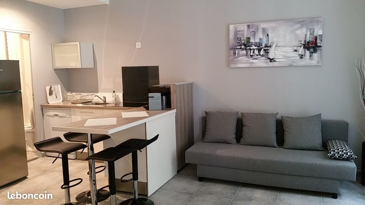 Appartement T2 35 m2 meublé style contemporain Toulon - Centre Ville - Rue Pietonne Adresse : Rue de Lorgues Appartement T2 meublé rénové de 35 m², style contemporain au 1er étage avec balcon en centre-ville sur rue piétonne, calme Loyer 750€ + 50€ charges (internet fibre box Sfr+ Eau + charges communes immeuble), hors Edf Cuisine équipée (Plaque induction- four + Micro-ondes-Réfrigérateur congélateur Lave-Vaisselle –Cafetière Nespresso), Salon avec canapé convertible 2 personnes- Tv écran plat Chambre séparée par verrière d’atelier avec lit 140x190, grand placard et commode Salle d’eau avec douche italienne et Lave-Linge Balcon avec table de jardin donnant sur rue piétonne (expo Sud Est) Centre-ville, calme, proche commerces, restaurants et bus A 5 mn à pied de l’UNIVERSITE de Toulon et écoles d’ingénieur (Isen…) et à 10 mn à pied de la Gare Sncf de Toulon, école de commerce Kedge, design Camondo et de la Base Navale.