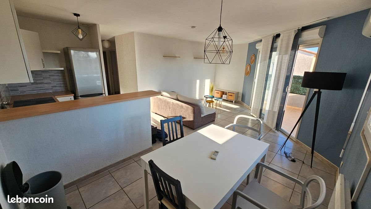 Secteur de Perpignan Sud quartier Saint Gauderique. Proche des commerces du Mas Guerido Cabestany et de Medipole. Apparemment F3 de 56m2 Comprenant 2 chambres avec placards intégrés. Lumineuse pièce de vie avec cuisine totalement équipée ouverte sur le séjour. Terrasse de 7m2 Climatisation Place de parking Interphone Lave linge Lave vaisselle Sèche serviette Etc.... Dossier sérieux uniquement