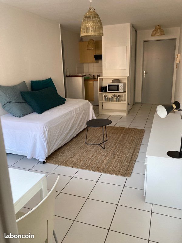 Loue meublé T2 Rdc dans petite résidence calme 2002 proche Chartrons. Mobilier récent: plaques, micro-onde, four, frigo, vaisselle, lave linge, canapé, meuble salon, table, chaises, commode, penderie, lit. Radiateurs électriques changés. Électricité Nc dans les charges. Dispo mi décembre. Tram C et D : 10 mn à pied