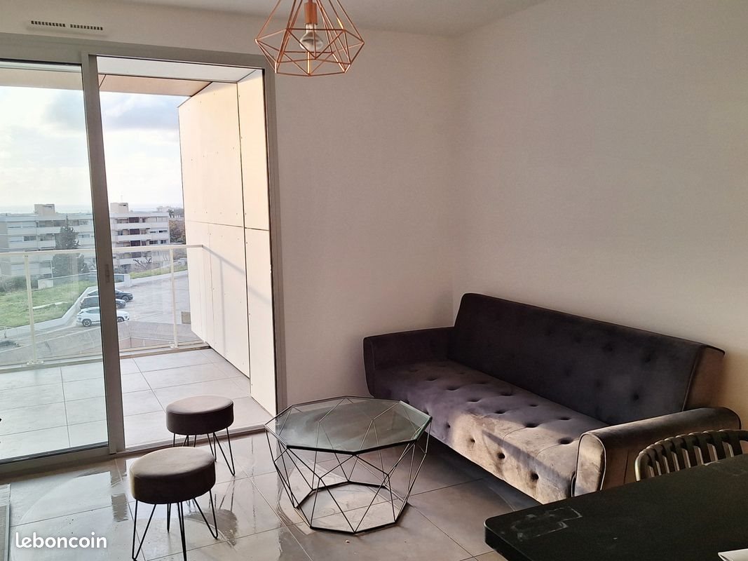 Dans résidence de standing avec piscine, T2 meublé de 38 m² avec grand balcon de 12 m² offrant un cadre de vie privilégié : calme, sans vis-à-vis, avec vue mer et une belle luminosité grâce à son exposition Ouest. L’Appartement, entièrement neuf et équipé d’une climatisation réversible intégrée, comprend : - Un séjour avec canapé convertible, table basse et meuble Tv - Une cuisine entièrement équipée avec électroménager intégré (lave-vaisselle, lave-linge séchant, four pyrolyse, plaque induction, réfrigérateur-congélateur) - Une chambre avec lit 160×200 et rangements - Une salle d’eau moderne avec Wc - Une terrasse avec table et chaises Les atouts de la résidence : - Grande piscine extérieure (20 mètres) avec vue dégagée, réservée aux résidents - Salle de sport - Immeuble récent, sécurisé, avec ascenseur - Tous commerces à proximité - Secteur Bonneveine / Vieille Chapelle, à proximité des plages. Plus de photos sur demande. Loyer mensuel : 900 euros + 100 euros de provision de charges Parking en sous-sol pour 90 euros par mois, avec local vélo et stationnement motos possible.