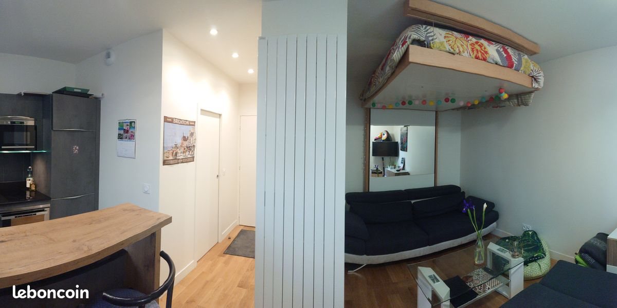 Studio meublé refait à neuf au pied de la butte aux Cailles comprenant dressing dans l'entrée (nombreux rangements), cuisine moderne équipée (micro-onde, four-lave-vaisselle, frigo-congel, hotte) séjour-salon avec coin sommeil par système Bed Up au plafond 2.70 m, salle d'eau comprenant Wc douche et lave-linge. Surface 27,86 m2. Exposition Est, arbre en face fenêtre. Emplacement de parking sécurisé en sous-sol à 100 m. Garanties exigées.