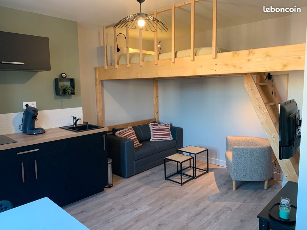 Rouen Rive Gauche- quartier saint sever, Place des emmurées, A deux pas du métro Joffre-Mutualité, Studio de 25 m2 lumineux entière refait à neuf en 2022 au 5ème étage sans ascenseur. Entrée avec coin bureau et grand placard de rangement ,pièce de vie avec cuisine entièrement équipé, salon et coin repas, lit 140x190 en mezzanine . Salle de douche avec Wc Cave à disposition Classe énergétique D. Chauffage : radiateur électrique Libre début janvier. Montant du loyer : 410€/ mois Montant des charges : 20€/ mois.