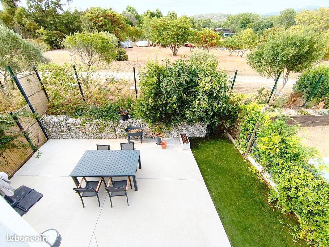 ?A vendre Sur les hauteurs de Sainte Marthe, charmante maison mitoyenne de 83m2, avec jardin d'environ 130 m2. La maison a été construite en 2023 et est donc toujours sous garantie décennale. Cette maison séduit par son côté pratique, proche de toutes commodités à pieds (école, boucherie, pharmacie, supermarché Utile), mais aussi par son côté "nature", de par sa proximité avec la colline et sa vue sur le pic de l'étoile. L'espace derrière la terrasse est classé boisé. ? ??Proche du Bus 3 direction métro la Rose. Proche de la L2 (autoroutes), à mi-chemin entre la Valentine et Plan de Campagne. Pas de travaux à prévoir. Pompe à chaleur. Système d'alarme. Au Rdc : - Une grande cuisine aménagée ouverte - Un espace séjour / salle à manger lumineux donnant sur une grande terrasse d'environ 35 m2 sans vis à vis. - Un Wc indépendant avec vasque simple - Possibilité d'accès au garage (17m2) par le salon. À l'intérieur de celui-ci, possibilité de garer une voiture et d'installer une machine à laver et sèche linge (prises et arrivée d'eau déjà présentes). - 1 place de parking également devant le garage. - Portail motorisé - Jardin avec gazon artificiel + arrosage automatique avec installation goutte à goutte pour l'ensemble des plantes longeant la clôture. À l'étage : - 3 chambres avec placards intégrés : - une avec suite parentale (douche à l'italienne et vasque simple). - 2 donnant accès à une terrasse de 12m2 - Une salle de bain avec baignoire et double vasque - Un wc indépendant Prix : 392 000 € Agences s'abstenir svp merci.