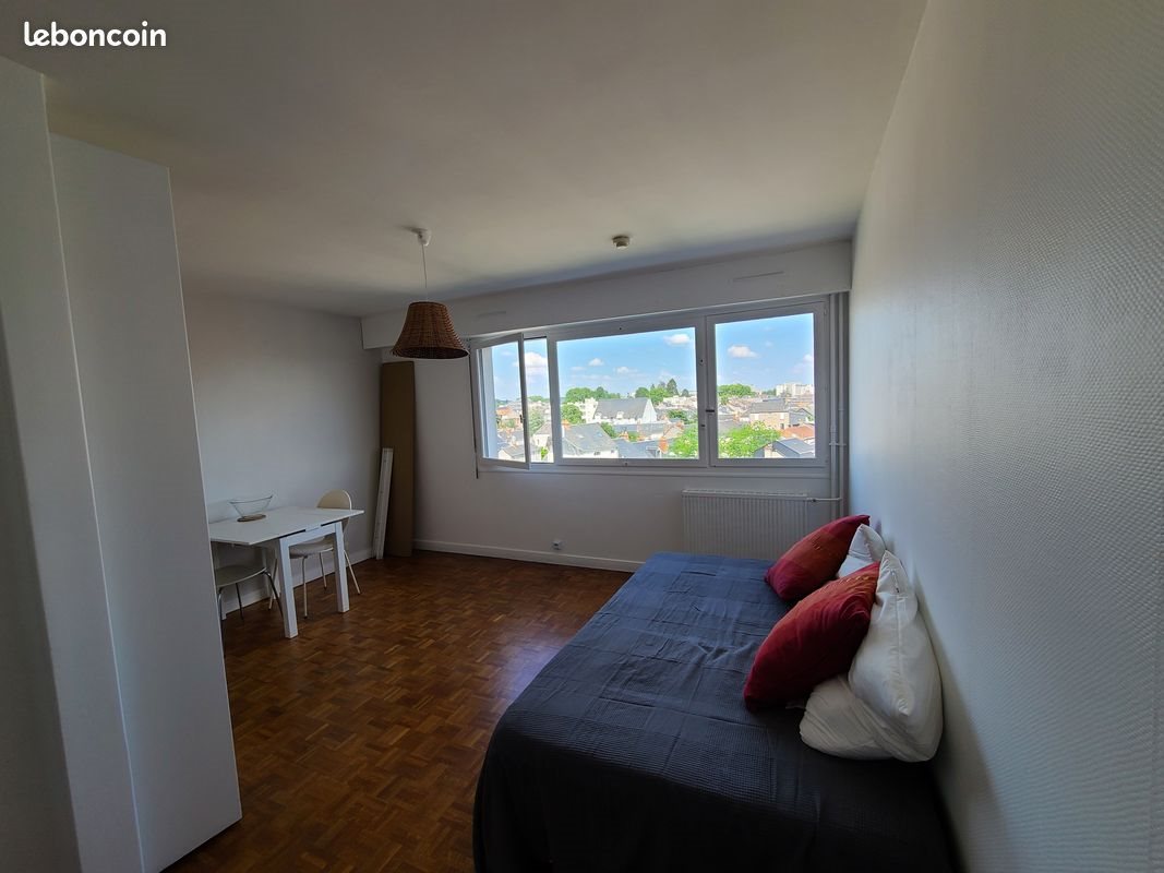 Studio meublé 27m2, très lumineux Pour une personne, garant demandé Situé à l'angle rue Giraudeau et Boulevard Jean Royer, au pied des transports et commerces (superette à 50m), parfait pour un(e) étudiant(e) avec accès rapide aux grandes écoles (15 minutes à pieds de la fac de médecine), cet appartement est loué meublé au prix par mois de 420 euros + 70 euros de provision pour charges (incluant le chauffage centrale, eau froide et chaude). Il est situé au 5ème étage avec ascenseur, vue magnifique sur Tours. Il dispose d'une entrée avec dressing, d'une pièce principale avec cuisine ouverte de 20 m2, d'une salle de bains avec wc, et d'un grand local vélo dans le hall de l'immeuble. Disponible fin novembre/début décembre. Equipements inclus dans la location : un lit de 120x190, table de nuit- Four et plaque de cuisson - table avec 2 chaises - Ustensiles de cuisine et vaisselle (casseroles, poêle, etc...) –divers rangements- branchement pour une machine à laver. Le Parquet vient d’être entièrement refait. (Les photos sont avec l’ancien parquet)