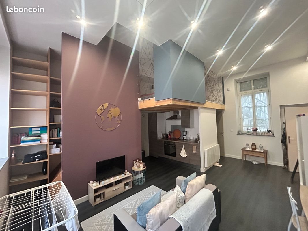 Bonjour, Nous vous proposons un appartement de 36m2 loi Carrez ( 56m2 de surface réelle )situé en plein centre ville de Saint Etienne Le logement est constitué d'un bel espace de vie, avec une cuisine toute équipée et ouverte sur le salon, et d'une salle d'eau ( douche à l'italienne et Wc suspendu ) pour le rée de chaussé La chambre se trouve sur la mezzanine, qui fait 20m2, avec un placard de rangement. L'appartement se situe à 9 minutes à pied de l'université Jean Monnet, les arrêts de tram les plus proches sont à 4 minute à pieds. Le loyer est de 450e + 50e de charges Le logement est disponible à partir du 1 Janvier ( date approximative ) Le bien est loué meuble ( lave linge, canapé, télé, bureau, 2 lits 1 place de 90x190 ainsi qu’une cuisine équipée : frigo, four, hotte, lave vaisselle, plaque de cuisson )ainsi que des fenêtres Pvc double vitrage avec des roulants manuels Les contrats concernant l'eau et l'électricité sont à la charge du locataire N'hésitez pas à nous afin de planifier une visite pour vous faire une meilleure idée de l'appartement Possibilité de photos supplémentaires sur demande Je reste à votre disposition si vous avez la moindre question Vincent