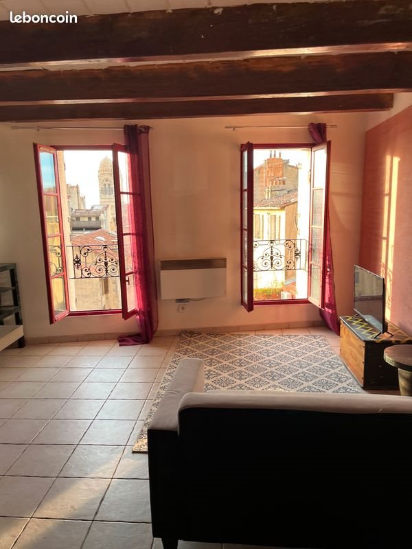 Appartement 30m2 , situé au 3 éme étage, en plein coeur du Panier. Il se compose d'une grande pièce de vie lumineuse avec poutres apparentes, de deux grandes fenêtres offrant une vue dégagée et typique sur les toits de Marseille, d'une cuisine équipée ( frigo , machine à laver, lit , canapé) et d'une salle de bain avec douche. Appartement plein de charme, calme, baigné de lumière au sein d'un quartier emblématique, et vivant, à proximité immédiate des commerces, restaurants et lieux culturels. Loyer:550€ Charges:100€ Loyer charges comprises: 650€ Location meublée Agence s'abstenir. De Particulier à Particulier.
