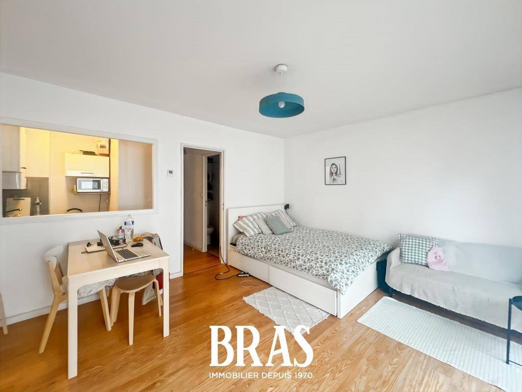 Nantes - Ile De Versailles Référence 2918 Charmant appartement studio Meublé de 24,39 m², situé au 1er étage sans ascenseur et comprenant : entrée avec placard, pièce de vie de donnant sur un balcon, un espace cuisine équipé (plaques de cuisson gaz, arrivée d'...