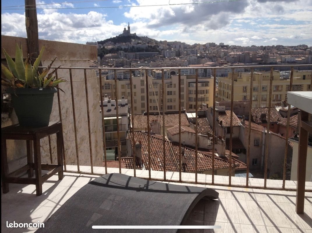 A saisir, disponible de suite Studio refait à neuf Plomberie, électricité, peinture, parquet, tout est neuf Clim réversible Terrasse commune sur toit plein Sud vue 180° Vieux Port et Notre Dame Derrière la mairie, 23 montée des Accoules 2 minutes du Vieux Port Entre Place du Panier et Hôtel Intercontinental Loyer comprend Appart, Charges, Internet Chauffage & Electricite Appartement suréquipé, ex saisonnier Parquet au sol 2 grandes fenêtres, double vitrage Belle hauteur sous plafond Petit immeuble de 6 appartements Environnement familial et bohème Très calme Cage escalier refaite Terrasse commune de 20 m2 au 3e étage, vue époustouflante sur vieux Port 160° et Notre Dame de la Garde Gestion propriétaire en direct Loyer comprend Appart, Internet Et Electricite 700+50 charges + 30 internet + 50 électricité donc 850 en tout Pas sérieux, s'abstenir merci