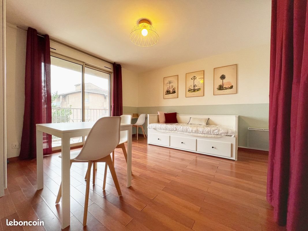 A découvrir ! Charmant appartement T1 de 27 m² entièrement meublé et rénové en 2023 pour votre plus grand confort. Il se compose d'une grande pièce à vivre, d’une salle d'eau fonctionnelle et d’une cuisine séparée et équipée. L’Appartement bénéficie également d’une place de parking aérienne privative, d’un local vélo, ainsi que d’un grand balcon jouissant d’une vue dégagée pour prendre votre petit-déjeuner à l’air libre et au calme. Tout le mobilier est neuf de 2023. En détails : Dans votre séjour, vous profiterez d’un espace bureau, d’un grand canapé lit (modulable en 90 x 200 ou 180 x 200), d’une table avec rallonges pour recevoir famille et amis, d’un grand meuble Tv, d’une grande armoire ainsi que d’un grand placard avec penderie pour ne jamais manquer de rangement. Votre cuisine est équipée (sauf lave linge) avec une plaque de cuisson par induction, réfrigérateur, micro-ondes, ustensiles de cuisine et vaisselle… Le tout flambant neuf ! Votre salle d’eau comprend quant à elle une douche confortable, un meuble vasque avec miroir ainsi qu’un Wc. L’Appartement se situe chemin de la terrasse, au 2ème étage sans ascenseur, d’une résidence très calme et arborée donnant sur le bois de Sarabelle. Les lignes 23, L8 et L9 sont à proximité pour vos déplacements sans voiture et les pistes cyclables passent juste devant la résidence. Le loyer est de 600 € charges comprises (électricité/internet à votre charge). Premier contact par message en précisant un maximum votre profil (garantie visale appréciée), merci.