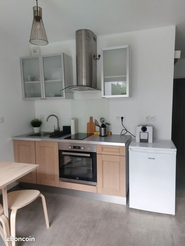 Loue studio 23 m2 entièrement meublé. Robertsau, dans petite copropriété au calme. Jardin. Chauffage collectif électrique. Proche tram et bus. Garage à vélo.