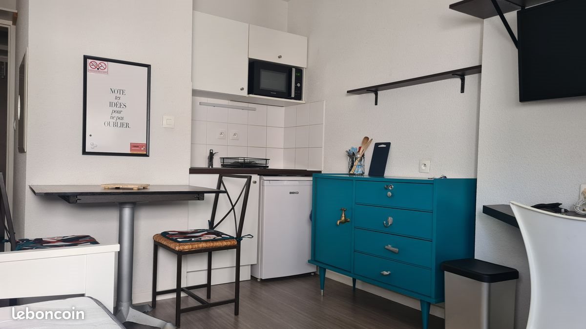 Studio de 19 m² à louer, rue Alfred Kastler, au milieu des campus, équipé d'une kitchenette avec plaques vitrocéramiques, frigo, four, micro-ondes, table, chaises, vaisselle, bureau, étagères, télévision, lit gigogne, salle d'eau avec douche et Wc, nombreux rangements, wifi, et aussi une salle de sports et laverie dans l'immeuble ainsi qu'un parking attenant. Le loyer est de 530€ toutes charges comprises. Disponible à partir du 20 décembre 2025.