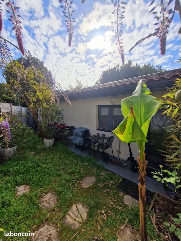 Venez poser vos valises dans ce joli studio de 24 m², entièrement meublé et équipé, niché dans le jardin d’une propriété privée (accès indépendant), offrant un cadre verdoyant et paisible ? Cocon idéal pour étudiant(e)/ jeune actif (non-fumeur) recherchant tranquillité et sécurité sans s’éloigner de Bordeaux centre, accessible en 15min avec Liane G. L’Espace, tout en longueur est lumineux. Il offre une 1ère pièce avec un coin cuisine et bureau donnant sur le jardin, séparée par une porte à galandage d’une pièce de vie puis d’un coin nuit. Parquet, double vitrage et velux récents. Terrasse donnant sur le jardin avec table et chaises. Descriptif détaillé : • Coin cuisine équipé : ?️ plaques à induction, frigo/frizer (accès au congélateur), micro-ondes/four, placards et nombreuse vaisselle, produits ménagers • Pièce de vie meublée : armoire, meuble bibliothèque, table, Tv ?, canapé (neuf) • Chambre meublée : lit 140, couette/oreillers (neufs), table de nuit et portant à vêtements • SdB : belle douche à l’italienne, meuble avc grand miroir, double vasque, sèche serviette électrique, fenêtre • Wc séparés A disposition ? Lave-linge ? Internet - Wi-FI à disposition et ? Stationnement gratuit dans la rue. Nombreux commerces à 5 min : boulangerie, pharmacie, bar/tabac, Lidl, Leclerc de Bruges Pour Sortir : restaurants et bars, bibliothèque Veilletet, Stade Sthelin et futur bassin nordique Stehelin Jean Zay à 5 min. Tout y est prêt pour une installation confortable dans un environnement charmant.