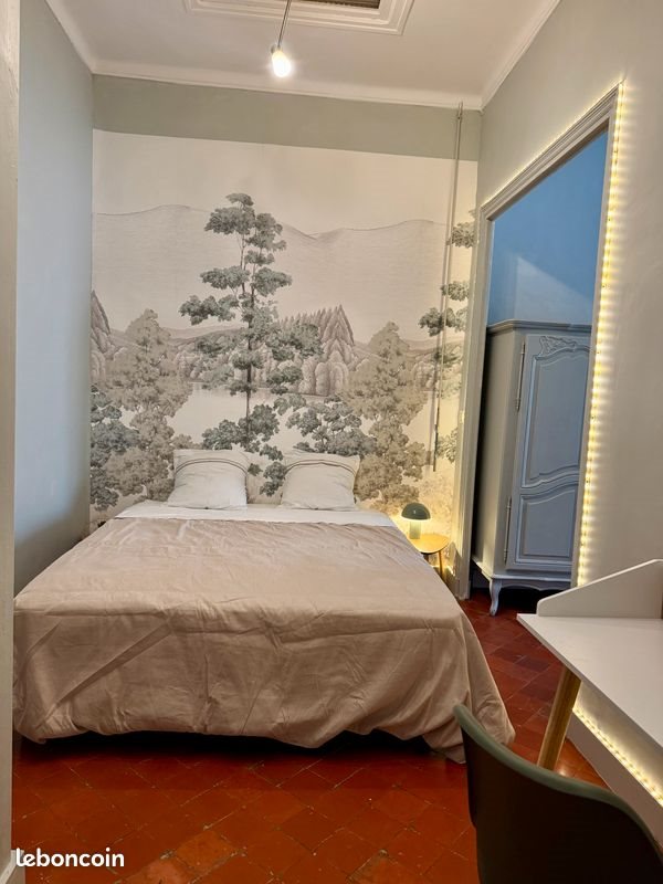 Nîmes arenes : emplacement de 1 er ordre pour ce vaste appartement de style bourgeois ( marbre, tomettes, plafonds moulures ) entièrement climatisé. Chambre avec balcon de 20m2 refaite à neuf , meublée ( literie 160x190), coin salon privatif , armoire penderie, meuble étagère, bureau. Mise a disposition d’un local à vélos ou trottinettes. Si vous êtes sympa et âgé d’au moins 25 ans cette coloc est pour vous !