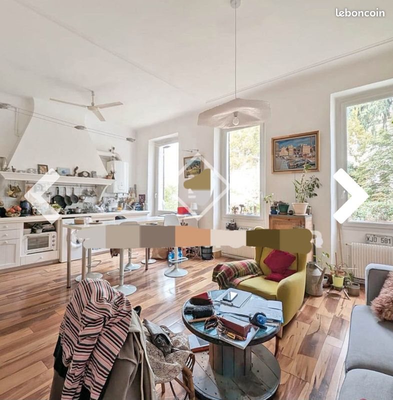 2E étage, 3 fenêtres traversant sur beaux jardins et rue très calme. Pratique : École de la maternelle à classe de 3ème en face. 78M2 + 12m2 cave. Secteur La Plaine.
