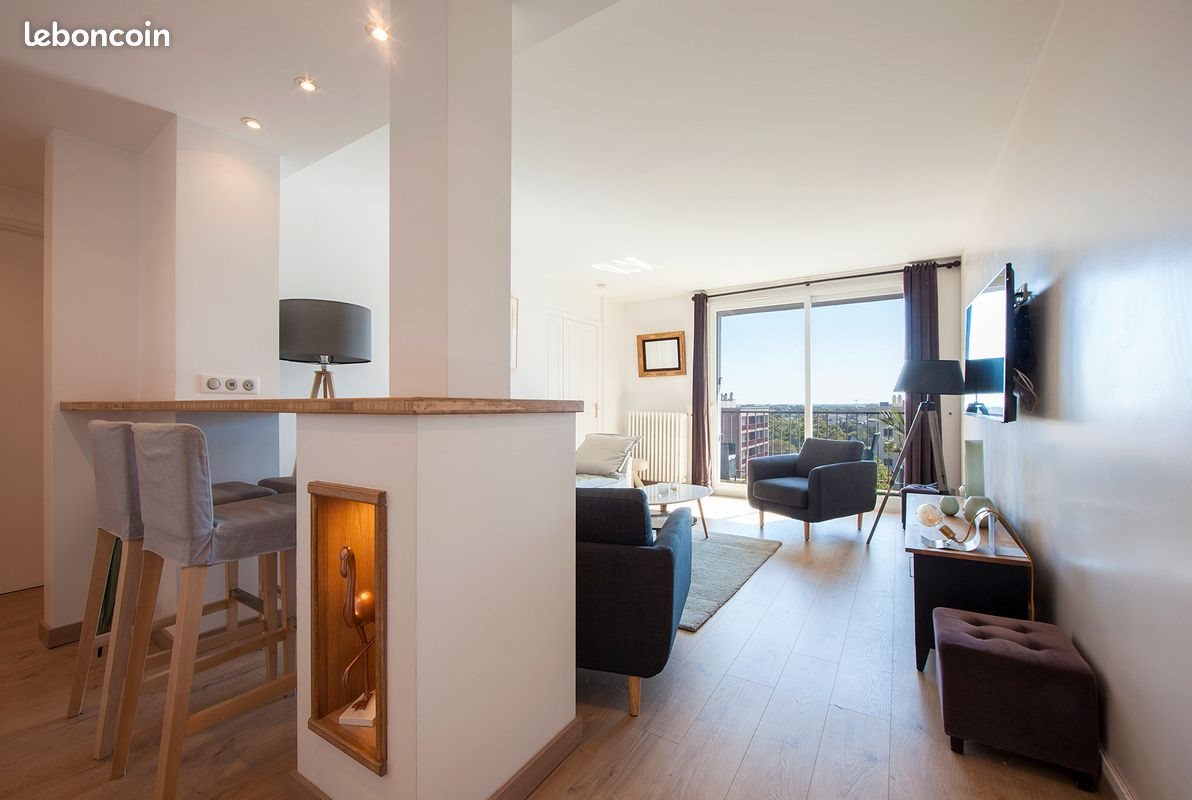 Tout est inclus dans le prix : internet, électricité, eau, charges d’immeuble, ménage, ordures ménagères et place de parking. Vous n’aurez plus qu’à déposer vos valises ! Loyer de 3 280 € par mois. Idéal pour des étudiants de passage à Rennes pour quelques mois, ou pour des professionnels en mission temporaire. L’Appartement est entièrement meublé et équipé avec tout le nécessaire : électroménager, draps, couverts, etc. Pour plus de photos, rendez-vous sur mon profil Leboncoin et consultez mon annonce "Rennes ✓ T4 refait à neuf - 6 pers - Parking - 2 balcons" en location saisonnière. Cet appartement Type 4 refait à neuf se situe dans le centre de Rennes. Celui-Ci est à proximité du célèbre marché des lices et à deux pas du mail François Mitterrand ( nouvelle artère prisée des Rennais pour ses nombreux bars et ses restaurants) . Vous apprécierez ce logement pour sa vue avec ses 2 balcons (20 m²), son calme, son cadre verdoyant, ses trois ambiances différentes dans ses trois chambres, son mobilier neuf, les promenades le long du canal ou dans l'un des deux plus beaux parcs de Rennes. Description du logement: Appartement refait à neuf se situant au septième et au dernier étage (ascenseur). L'immeuble se trouve dans un cadre calme et verdoyant. Un grand balcon traversant donne sur chaque chambre et un autre se situe coté salon (les deux exposés plein sud). Le logement dispose d'internet et de 4 télévisions ( une dans chaque chambre et une dans le salon). Tout le mobilier est lui aussi neuf: 3 lits (2 pers.) 140/190, grand canapé lit (salon), Cuisine équipée, grande salle de douche avec jet massant, lave-linge sèche-linge, lave vaisselle, micro onde, Chromecast sur la Tv du salon, grille pain et bouilloire "Smeg", plaque à induction, cafetière Delonghi, vue imprenable sur Rennes. Dans le quartier vous disposez d'une boulangerie, d'un Carrefour Market/U Express, une Biocoop, une pharmacie.